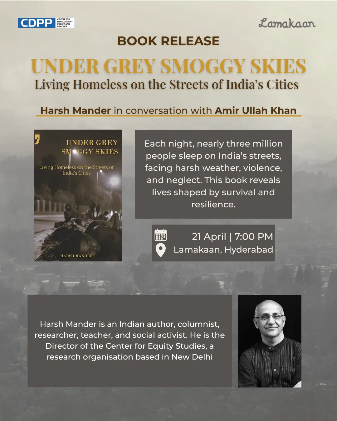 An important conversation on dignity, survival, and urban inequality. The book launch of Under Grey Smoggy Skies brings to light the lived realities of homelessness in India’s cities, as Harsh Mander engages in discussion with Prof. Amir Ullah Khan.